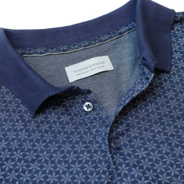 This navy patterned Thomas Maine polo shirt in slim fit, comes in 100% cotton and has a contrast collar.