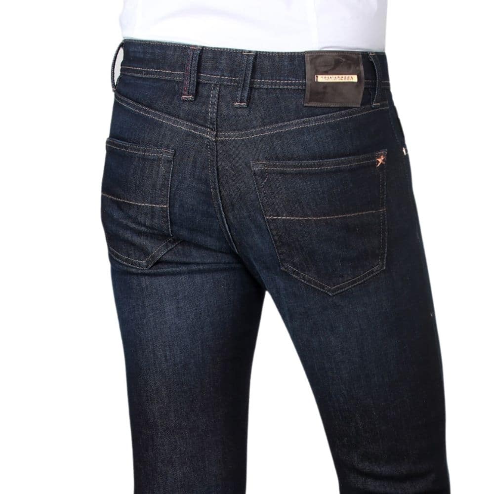These Heritage Leonardo 1 month dark blue wash jeans by Tramarossa have been designed to ensure maximum comfort, fit and elegance. This dark wash has contrast stitching, gold scissor pin on the back pocket and a grey patch with gold metal logo.