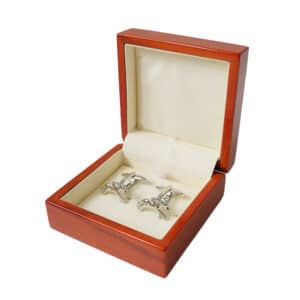 These silver horse cufflinks by Warwicks is finished with a silver horse jockey in an aerodynamic pose. It is a great piece for race days and could be your new lucky charm. Wear these cufflinks with our French cuff Eton Shirts as a confident combination for a winning smart outfit.