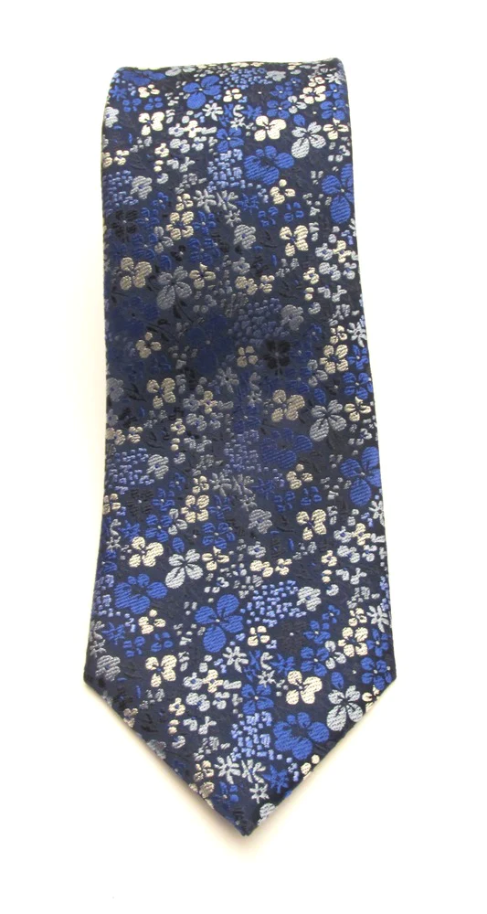 This Navy silk tie with royal, white and sky blue small flowers in an all over design. This striking silk tie is part of the Van Buck Red Label Silk Collection. The red label ties are woven from heavier silk yarn to give a nice quality feel, vibrant colours as well as the perfect knot. This silk tie is perfect for weddings, a party or even a day at the office. The quality of fabric we use for our ties is outstanding making them stand out as a quality piece of gentleman’s neckwear.