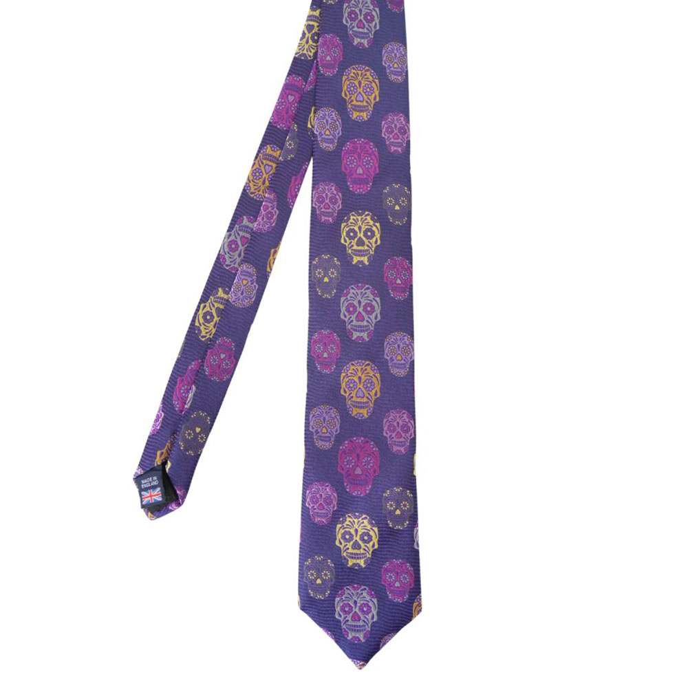 This Van Buck tie features a striking skull pattern that blends a spectrum of vibrant colors, creating a visually captivating design. Each shape is filled with a different hue, ranging from deep purples and oranges to bright pinks and blues.