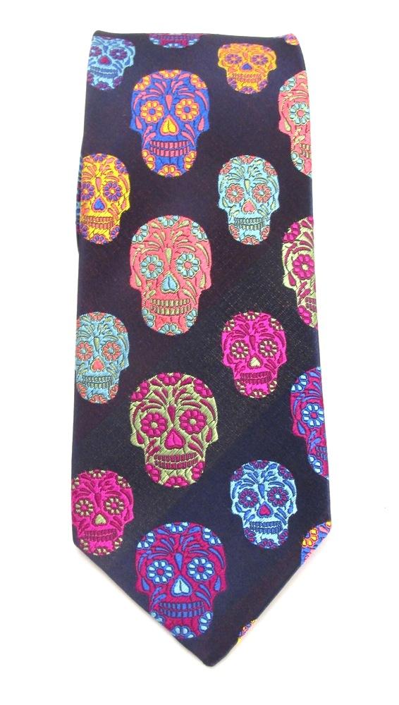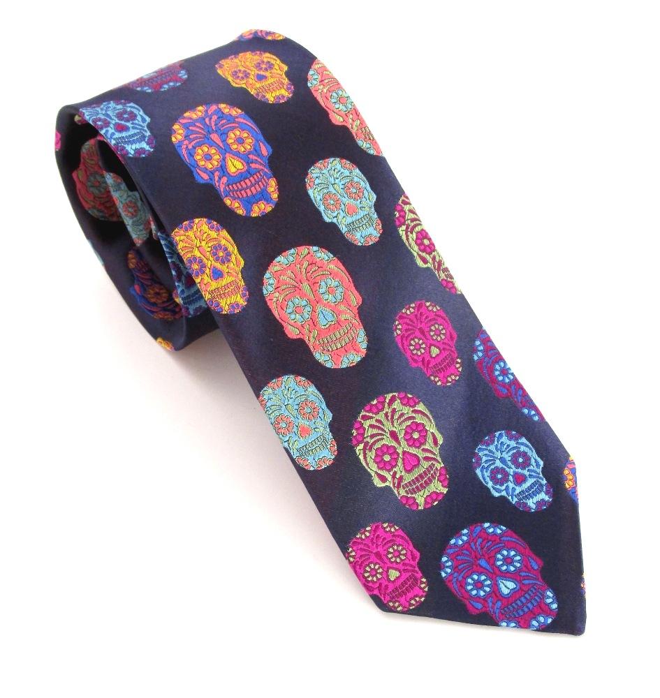 The Van Buck Skulls Tie in Purple adds a cool, eye catching detail to a smart outfit with its all over embroidered ‘Day of the Dead’ skull pattern and horizontal striped background. Each Skull tie is made in England and is limited to just 100 pieces. The tie comes Presented in a box making it a a perfect gift