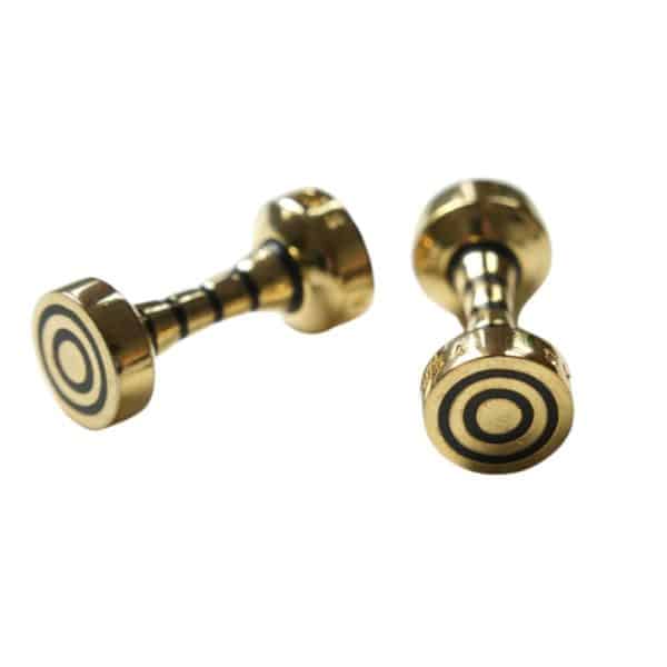 These target cufflinks by Veritas have an eye-catching gold finish. The combination of the gold finish and black circular outlines symbolises prosperity, formality and power. Wear these cufflinks with our French cuff Eton Shirts as a confident combination for a winning smart outfit.