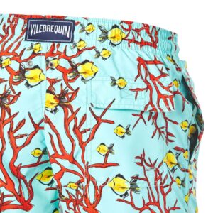The Vilebrequin ‘Moorea Coral and Fish’ men’s swim shorts are a stylish nod to the nautical lifestyle of Saint-Tropez. Crafted from spinnaker sail cloth—a high-quality, quick-drying fabric traditionally used in making boat sails and kites—these shorts offer both functionality and luxury. The design features a vibrant, repeat fish and coral print, capturing the essence of the ocean.