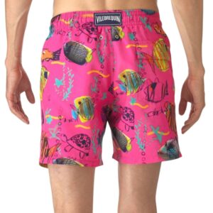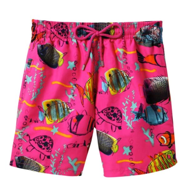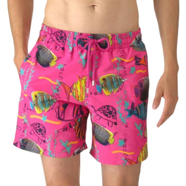 These Vilebrequin Pink Fish print swim-shorts come in a slim fit, featuring an elastic waist with a draw string and mesh inside. They also come with a travel bag.
