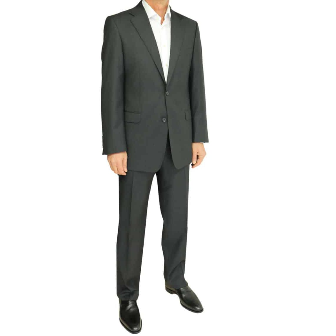 This Warwicks charcoal regular fit suit is 100% virgin wool has side vents and flat front trousers.a must for any formal occasion.