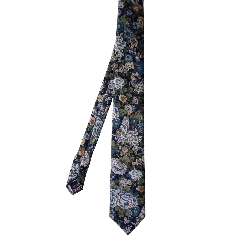 Warwicks Liberty Print Elysian Flowers Floral Navy Tie and Pocket Square Set