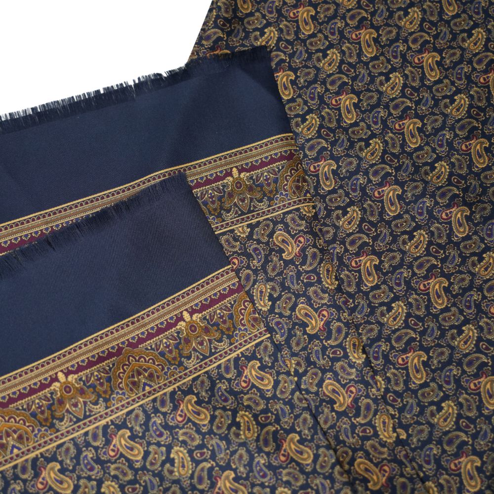 The WARWICKS Silk Navy Gentlemen Scarf with Paisley Pattern is a timeless accessory for the modern gentleman. Crafted from luxurious silk, it features a classic navy base enhanced by an intricate paisley design, offering both sophistication and subtle character. Lightweight yet refined, this scarf is the perfect finishing touch for formalwear, business attire, or elegant evening outfits.