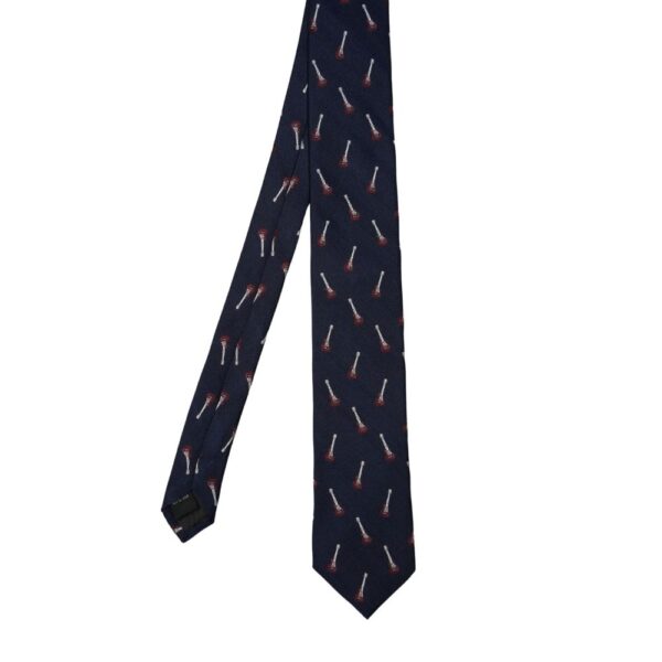 WARWICKS Slim Blade Navy Silk Tie With Green Guitar Motif. Ideal for race days or weddings to make an impactful appearance on the day.