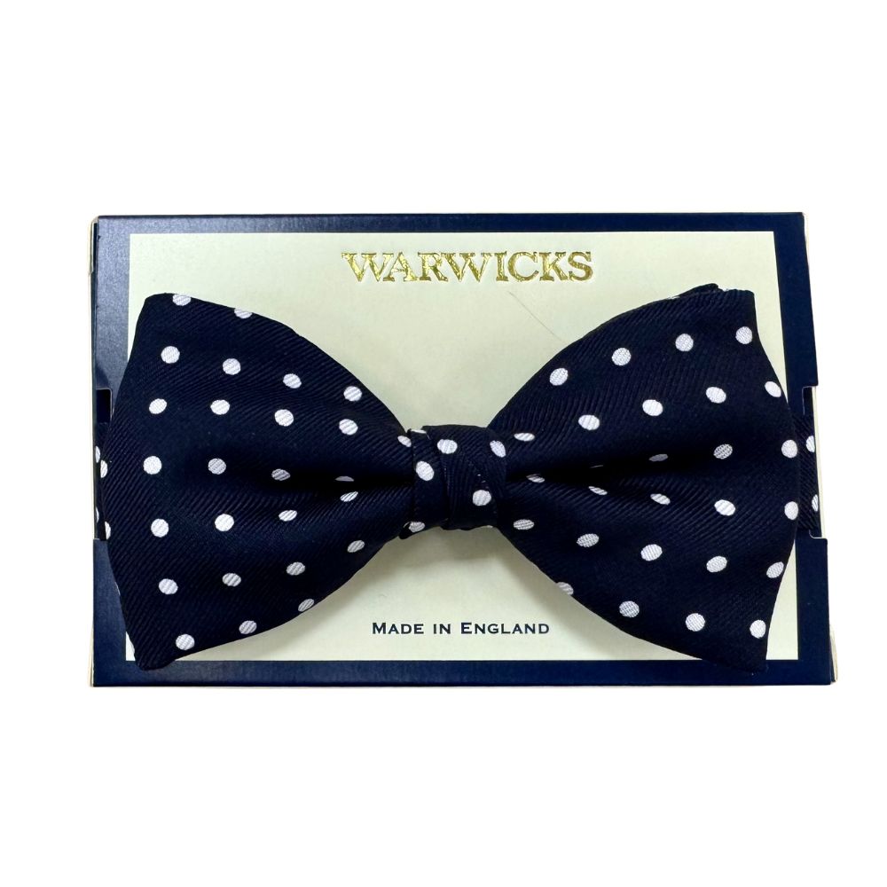 Warwicks Pre Tied Navy White Spots Silk Rib Bow Tie