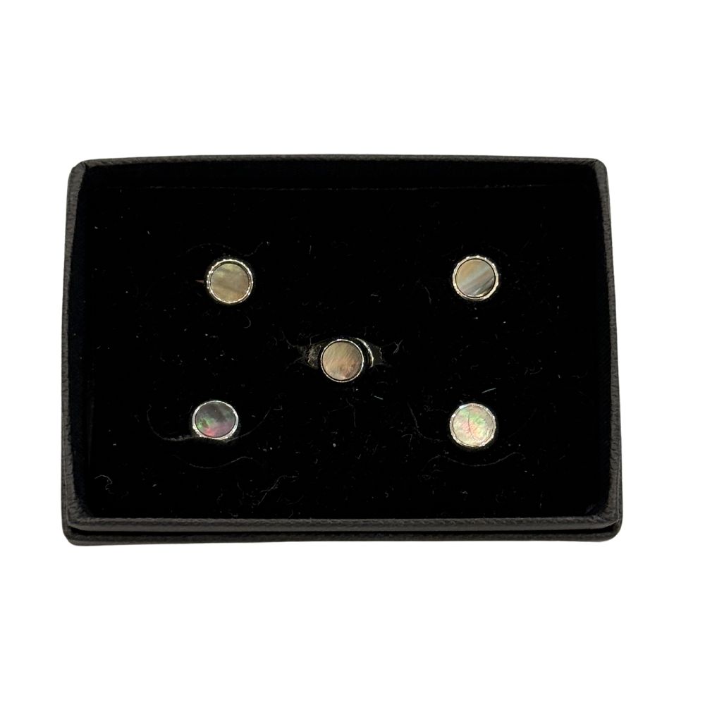 These Five Onyx Round Dress Studs are elegant and modern and suitable for black tie and formal events. Presented in a box.