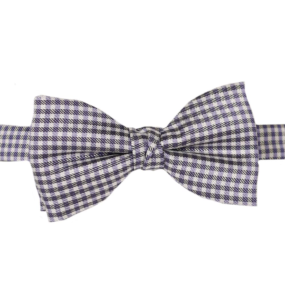 Warwicks Pre-Tied Gingham Bow Tie in White/Navy – Made from Silk and featuring a gingham pattern. Pre-tied for ease of wear, with a hidden clip-on fastening.