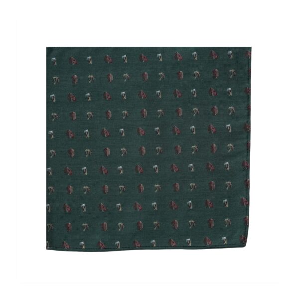 Warwicks green pocket square with Shellfish woven into it, crafted with pure wool. This accessory is made in Italy.