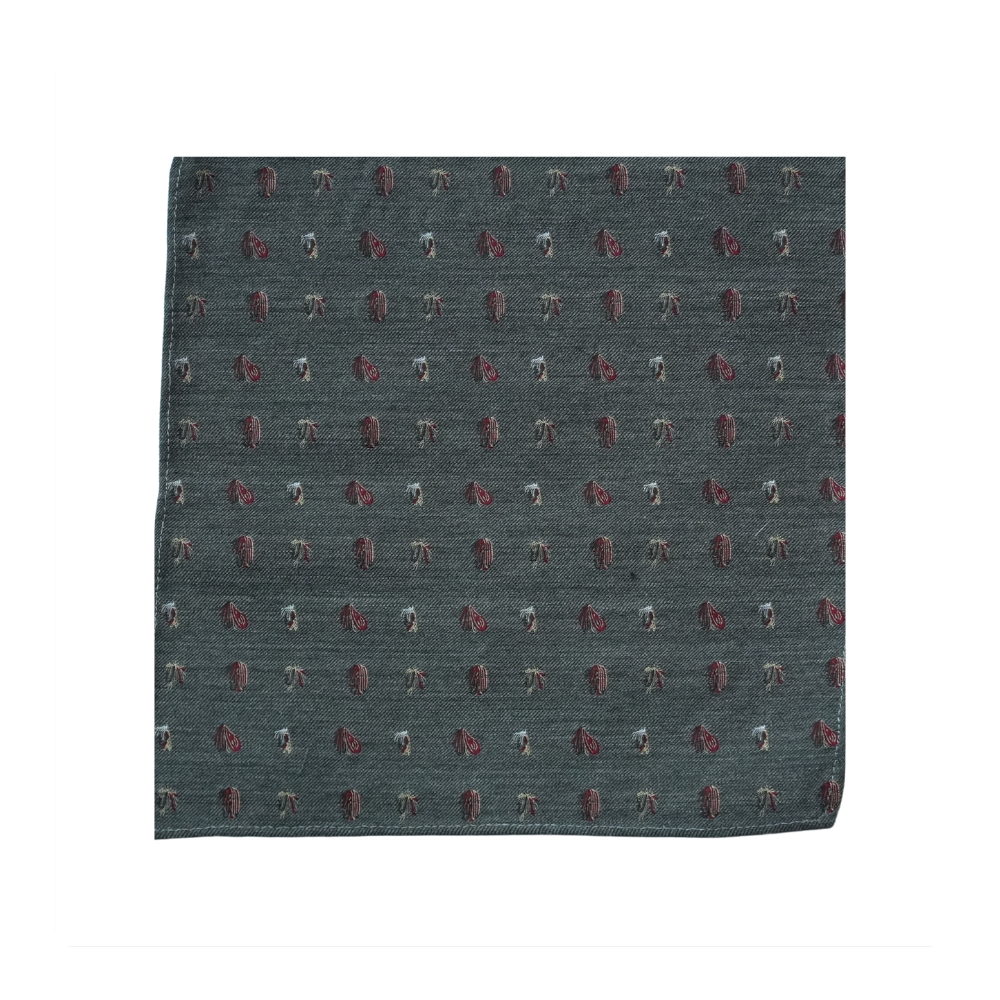Warwicks grey pocket square with Shellfish woven into it, crafted with pure wool. This accessory is made in Italy.