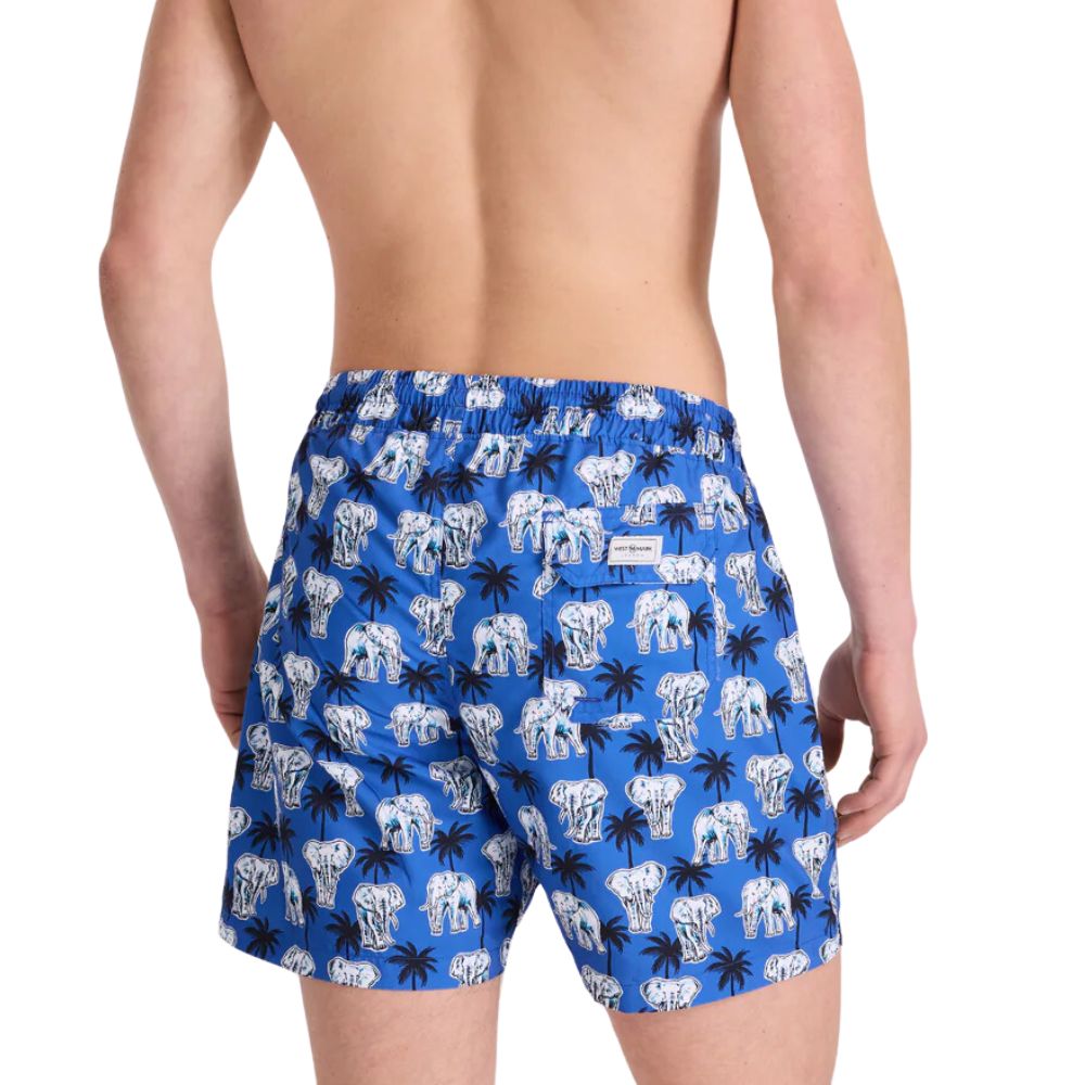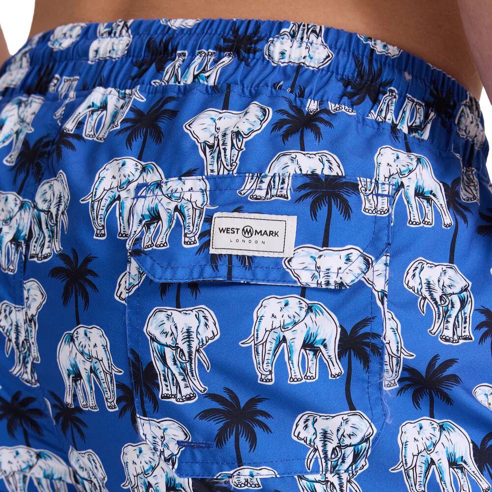 These WESTMARK Blue elephant pattern swim shorts are perfect for the beach and casual wear.