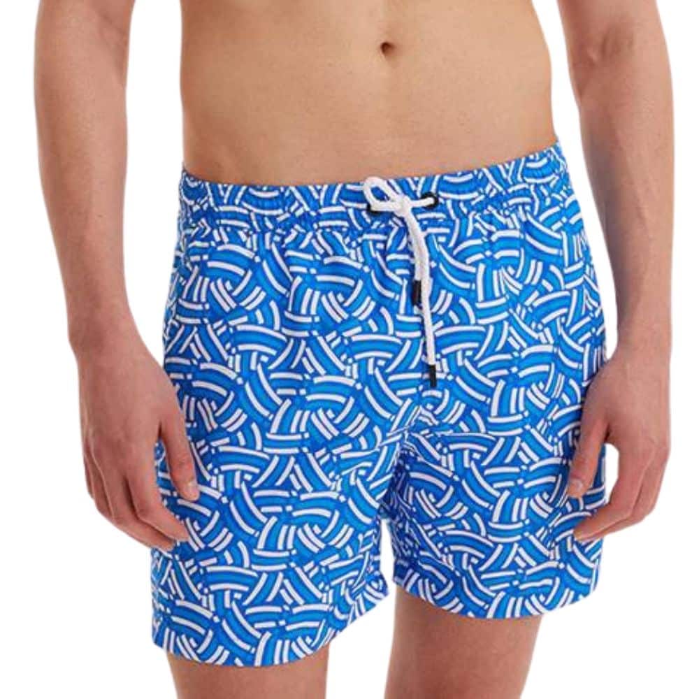 These WESTMARK Blue Geometric pattern swim shorts are perfect for the beach and casual wear.