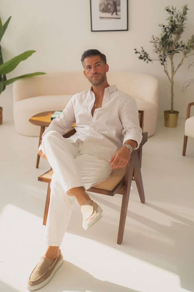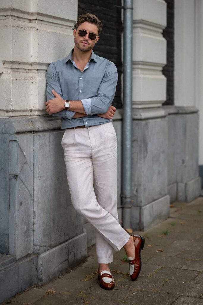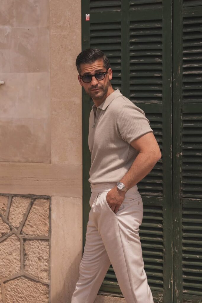 In warmer weather and more relaxed settings, tailored chino shorts can be acceptable. Just pair them with loafers or boat shoes and a polo or Oxford shirt. Keep the length just above the knee for a refined look, and avoid overly tight or baggy fits. Stick to classic colours like navy, stone, or khaki to maintain a smart casual vibe.