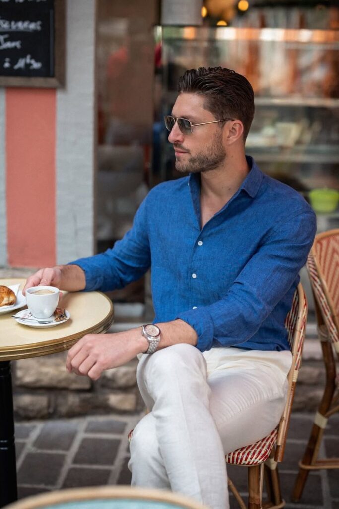 It means looking polished without being overly formal. You don’t need a full suit, but you should avoid loungewear, sportswear, or anything too scruffy. A smart casual look might include a blazer with chinos, a crisp shirt, and clean leather trainers or loafers. It’s all about striking the right balance between comfort and style.