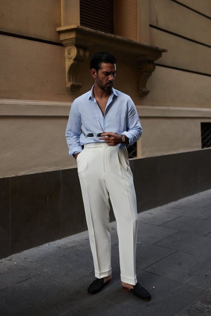 Avoid anything that looks too relaxed, sporty, or unkempt. Smart casual menswear should still feel intentional and put-together, even if it’s not formal. When in doubt, it’s better to be slightly overdressed than too laid-back.