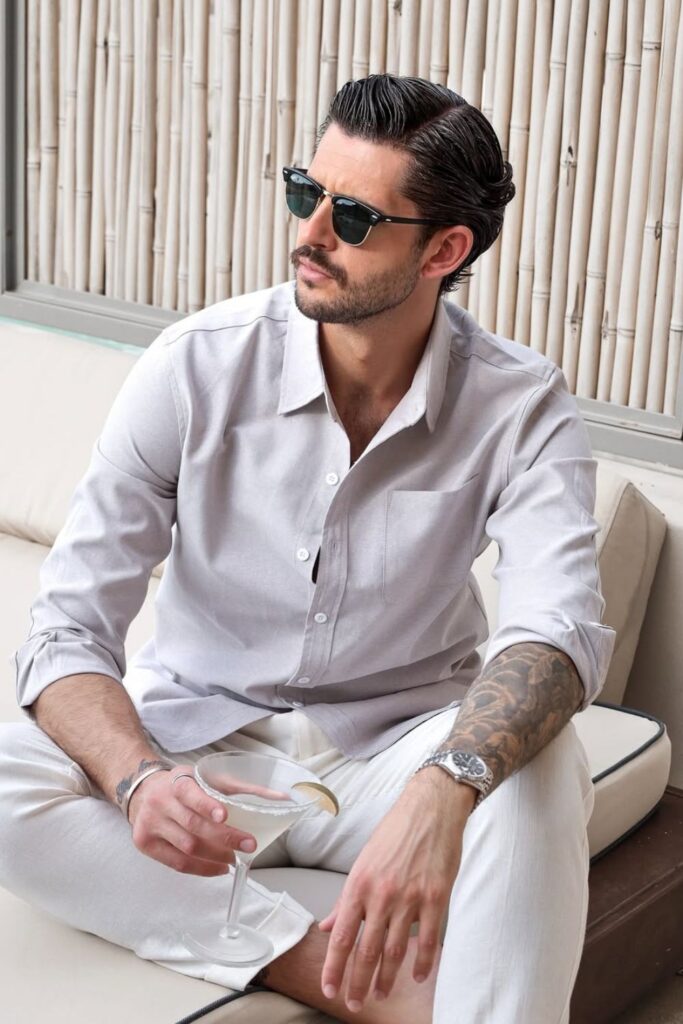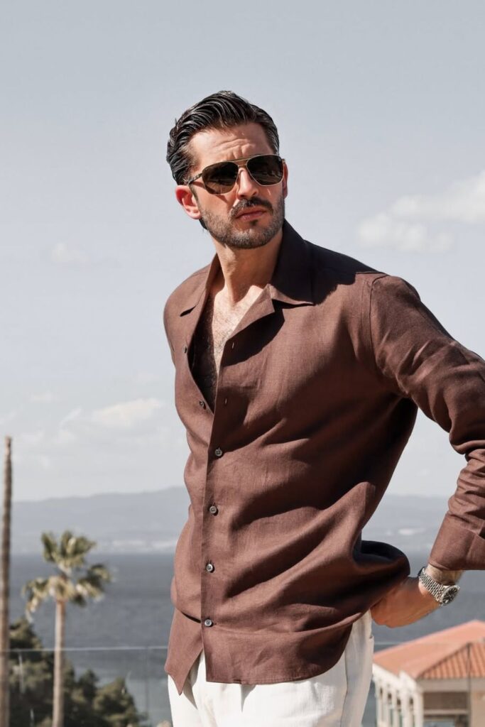 Yes – if they enhance the overall look. Stick to timeless, well-crafted styles like aviators or wayfarers in neutral tones, and avoid sporty or overly bold designs. In smart casual menswear, accessories like sunglasses should elevate your outfit, not distract from it. Choose subtle, classic frames that complement your face shape and outfit to maintain a clean, cohesive appearance.